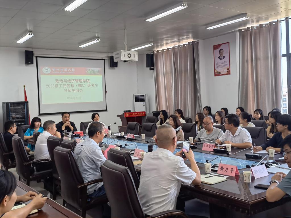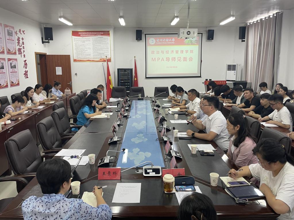 2023年9月7日,我院2023级研究生与导师见面会在422会议室举行MBA、MPA导师见面会,学院党委书记晏超、院长王红梅、副院长田丽敏及校内外导师参加会议,MBA导师见面会由田丽敏主持,MPA导师见面会由王红梅主持。