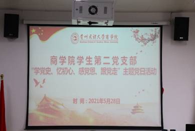 为庆祝中国共产党成立100周年,商学院学生第二党支部于2021年5月28日下午两点半在商学院422会议室开展“学党史、忆初心、感党恩、跟党走”主题党日活动,扎实推进党史学习教育暨“牢记殷切嘱托,忠诚干净担当,喜迎建党百年”专题教育深入开展。