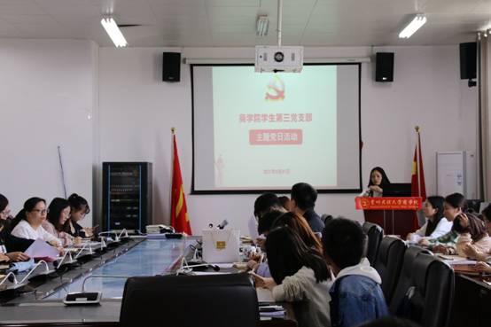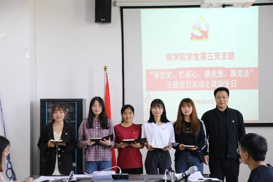 2021年5月31日下午14:30,商学院学生第三党支部在422会议室成功开展以“学党史,忆初心,感党恩,跟党走”为主题的党员政治生日活动。参与本次活动有的商学院党委书记晏超同志、学生第三党支部书记刘林杰同志、支委李晓雪同志以及支部全体党员。会议由支部书记刘林杰同志主持,会议在庄严的国际歌中拉开序幕。