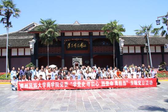 为认真开展党史学习教育和“牢记殷切嘱托、忠诚干净担当、喜迎建党百年”专题教育,传承红色基因,坚定理想信念。2021年6月5日,商学院党委组织师生党员前往贵州遵义开展“学党史 寻初心 践使命 勇担当”主题党日活动。