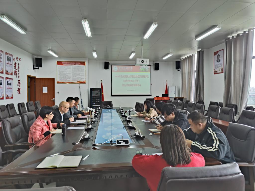 2023年5月11日下午2:00,政治与经济管理党委理论学习中心组(扩大)第九次集中学习研讨会在422会议举行,会议由学院党委书记晏超同志主持,学院党委委员、班子成员、各党支部书记参加会议。