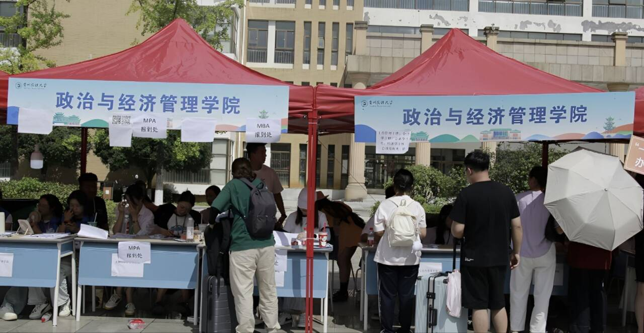 虽有骄阳炙烤大地,却抵不过迎新现场的融融暖意。校园的林荫道旁、报到点周围,随处可见政管学院志愿者们忙碌的身影:他们接过新生手中沉甸甸的行李,脚步匆匆却稳当;他们手持校园地图,耐心细致地指引路线,生怕错过一个细节;面对新生及家长的疑问,他们总能面带微笑,用清晰的解答驱散陌生与不安。一句句“这边请”“别着急”,一个个主动伸出的援手,让初入校园的新生们瞬间卸下疲惫,感受到如家般的关怀。
